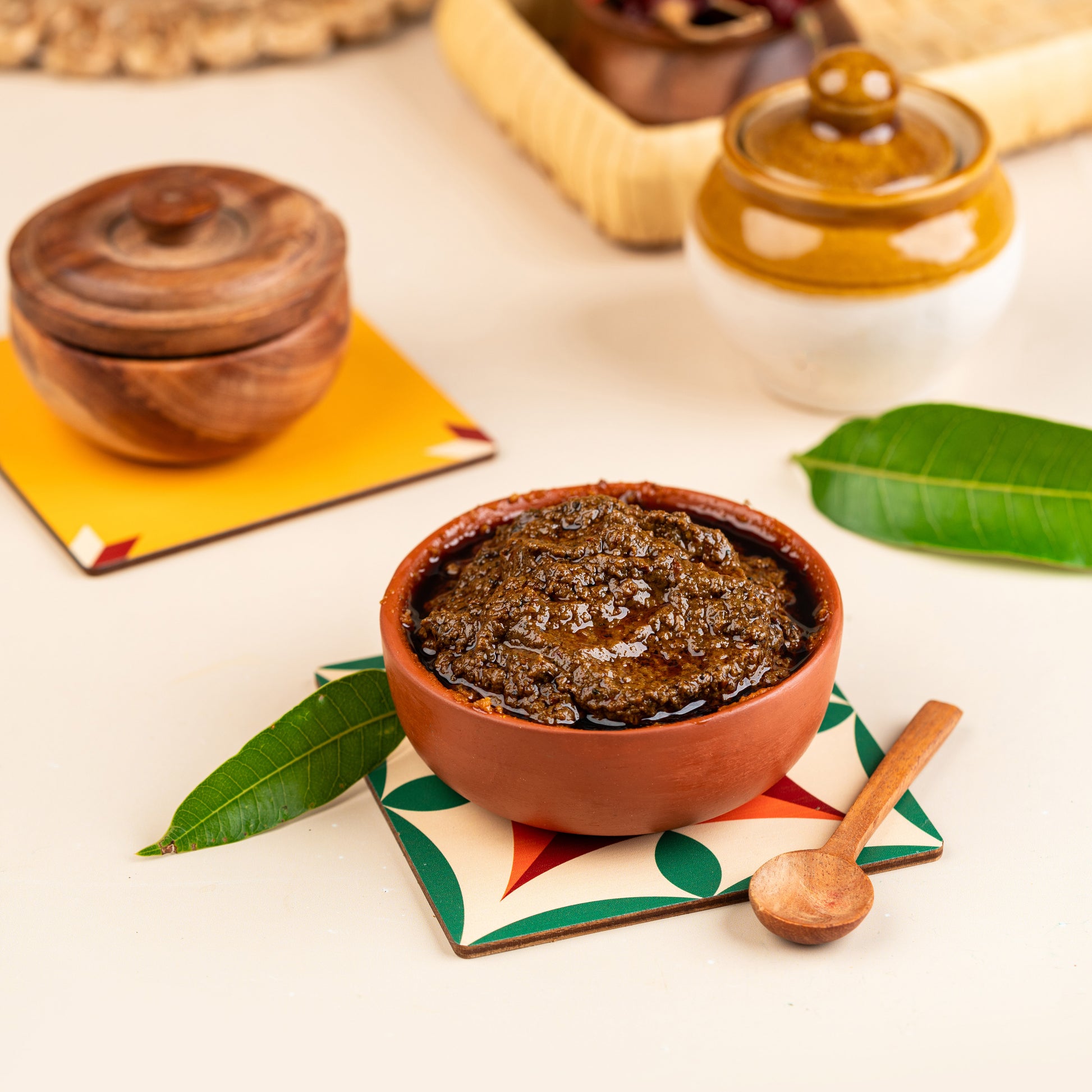 A tangy and spicy thokku made from baby raw mangoes, it’s a treat for mango lovers.