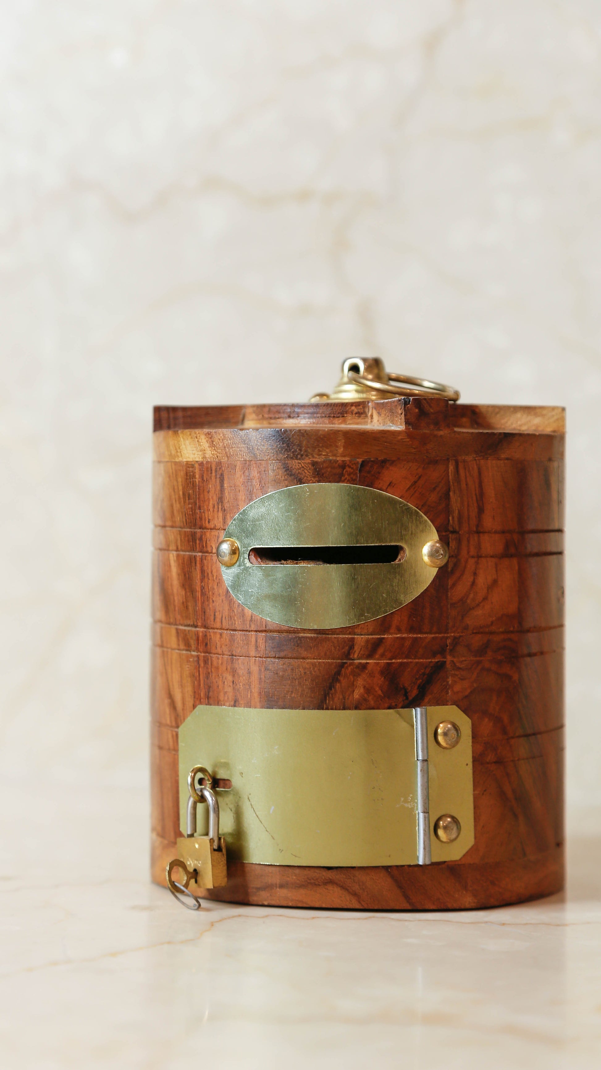 Savings become special with this Tanker Style Money Bank. Prepared by artisans, from fine wood and treated with a brownish antique finish to bring warmth and charm. Featuring a classic coin slot on the top while it securely opens from the side to retrieve savings, thus being a wonderful way of getting kids to learn to save or adding that nostalgic touch for grown-ups.