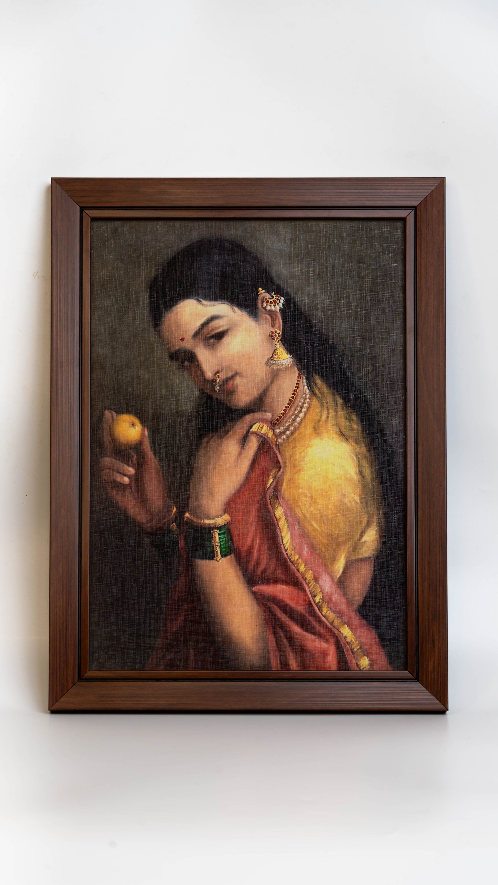 Add classical beauty to your rooms with our Ravi Varma paintings, now available as a digital print in sturdy fibre. Our Ravi Varma paintings display the artistic brush strokes and colours, along with his brilliance as an artist. This beautiful piece showcases Raja Ravi Varma's unique and creative role in establishing a new visual language in Indian paintings.